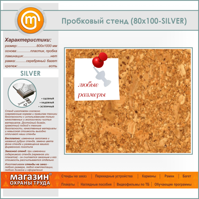 Пробковая доска, 100х80 см (IN-05-SILVER) в Ачинске купить