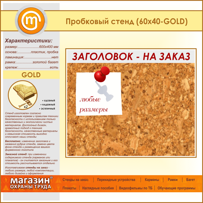 Пробковая доска с заголовком, 60х40 см (IN-06-GOLD) в Ачинске купить