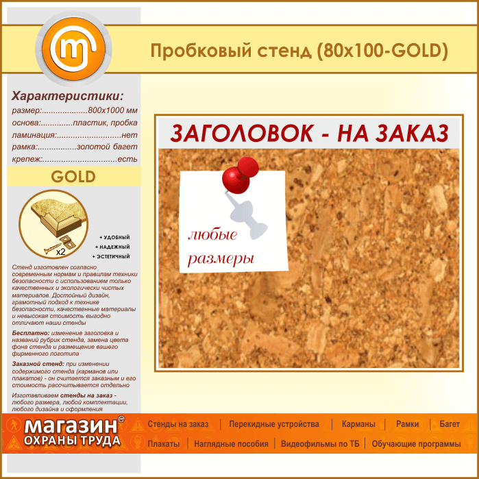 Пробковая доска с заголовком, 100х80 см (IN-06-GOLD) в Ачинске купить