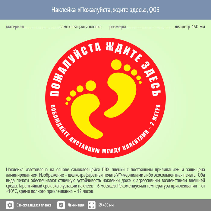 Наклейка на пол «Пожалуйста, ждите здесь», Q03 (пленка c ламинированием, диаметр 450 мм) в Ачинске купить