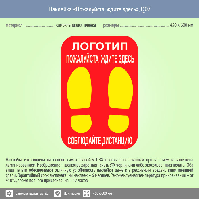 Наклейка на пол «Пожалуйста, ждите здесь», Q07 (пленка c ламинированием, 450х600 мм) в Ачинске купить