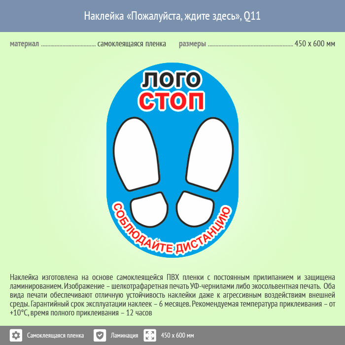 Наклейка на пол «Пожалуйста, ждите здесь», Q11 (пленка c ламинированием, 450х600 мм) в Ачинске купить