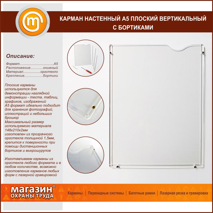 Карман настенный А5 плоский вертикальный с бортиками в Ачинске купить