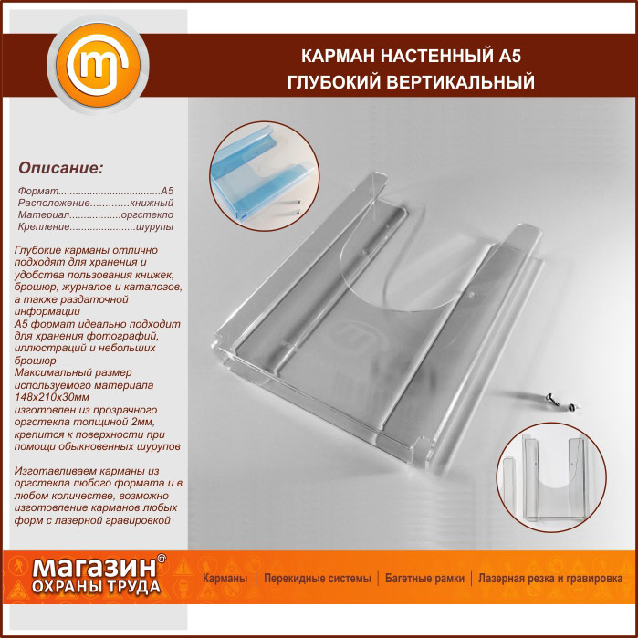 Карман настенный А5 объемный вертикальный в Ачинске купить