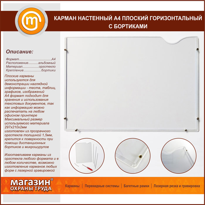 Карман настенный А4 плоский горизонтальный с бортиками в Ачинске купить