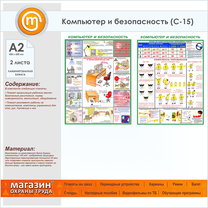 Плакаты «Компьютер и безопасность» (С-15, ламинированная бумага, А2, 2 листа) в Ачинске купить