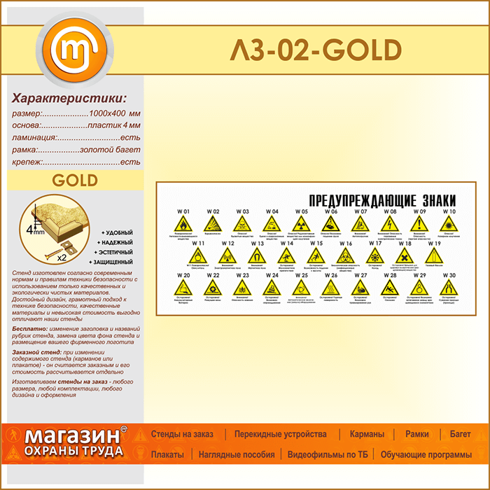 Стенд «Предупреждающие знаки» (LZ-02-GOLD) в Ачинске купить