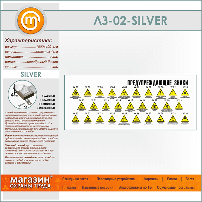 Стенд «Предупреждающие знаки» (LZ-02-SILVER) в Ачинске купить