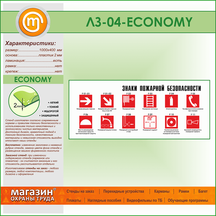Стенд «Знаки пожарной безопасности» (LZ-04-ECONOMY) в Ачинске купить