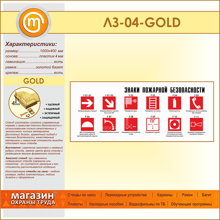 Стенд «Знаки пожарной безопасности» (LZ-04-GOLD) в Ачинске купить