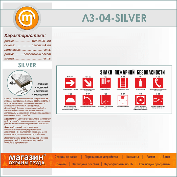 Стенд «Знаки пожарной безопасности» (LZ-04-SILVER) в Ачинске купить