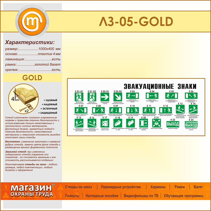 Стенд «Эвакуационные знаки» (LZ-05-GOLD) в Ачинске купить