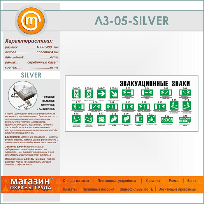 Стенд «Эвакуационные знаки» (LZ-05-SILVER) в Ачинске купить