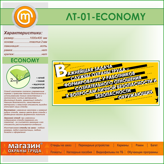 Лозунг «Важнейшая задача службы охраны труда...» (LT-01-ECONOMY) в Ачинске купить