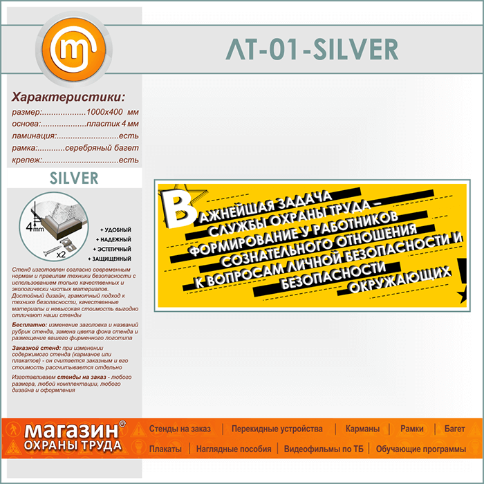 Лозунг «Важнейшая задача службы охраны труда...» (LT-01-SILVER) в Ачинске купить