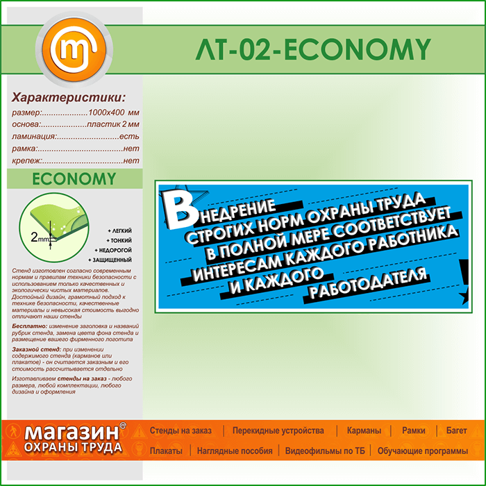 Лозунг «Внедрение строгих норм охраны труда...» (LT-02-ECONOMY) в Ачинске купить