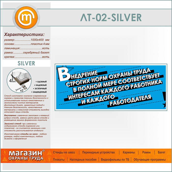 Лозунг «Внедрение строгих норм охраны труда...» (LT-02-SILVER) в Ачинске купить