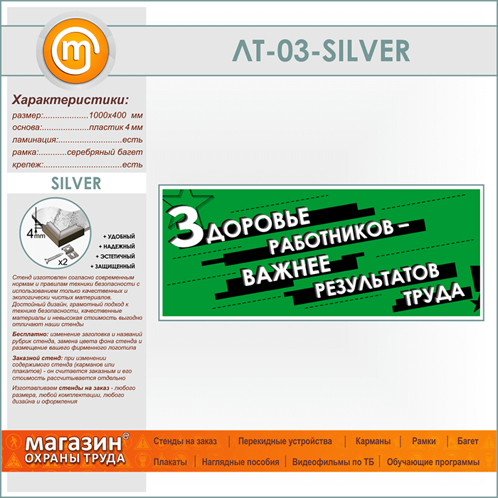 Лозунг «Здоровье работников - важнее результатов труда» (LT-03-SILVER) в Ачинске купить