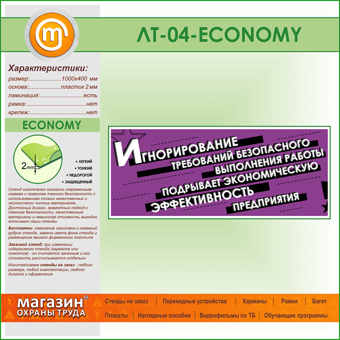 Лозунг «Игнорирование безопасного выполнения работы...» (LT-04-ECONOMY) в Ачинске купить