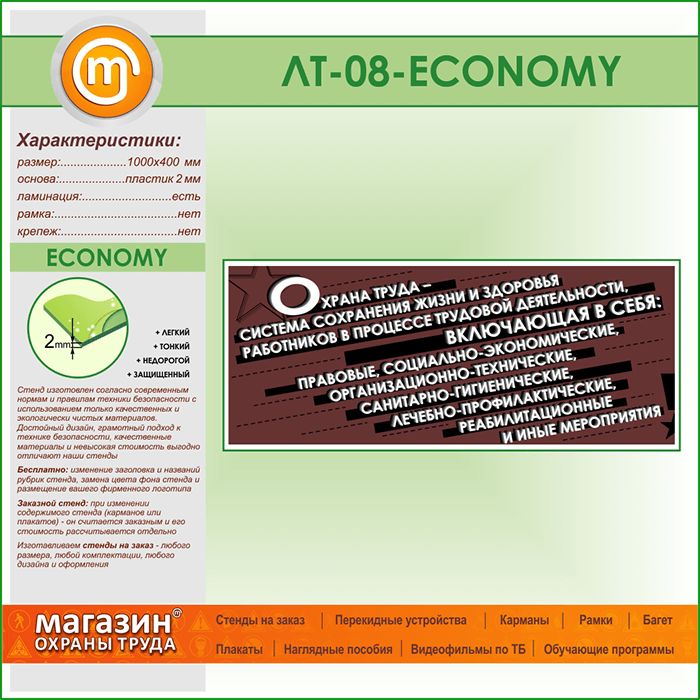 Лозунг «Охрана труда - система сохранения жизни и здоровья...» (LT-08-ECONOMY) в Ачинске купить