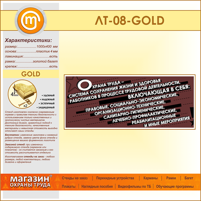 Лозунг «Охрана труда - система сохранения жизни и здоровья...» (LT-08-GOLD) в Ачинске купить