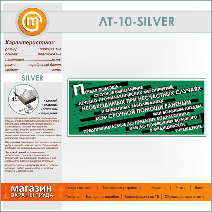 Лозунг «Первая помощь - срочное выполнение...» (LT-10-SILVER) в Ачинске купить