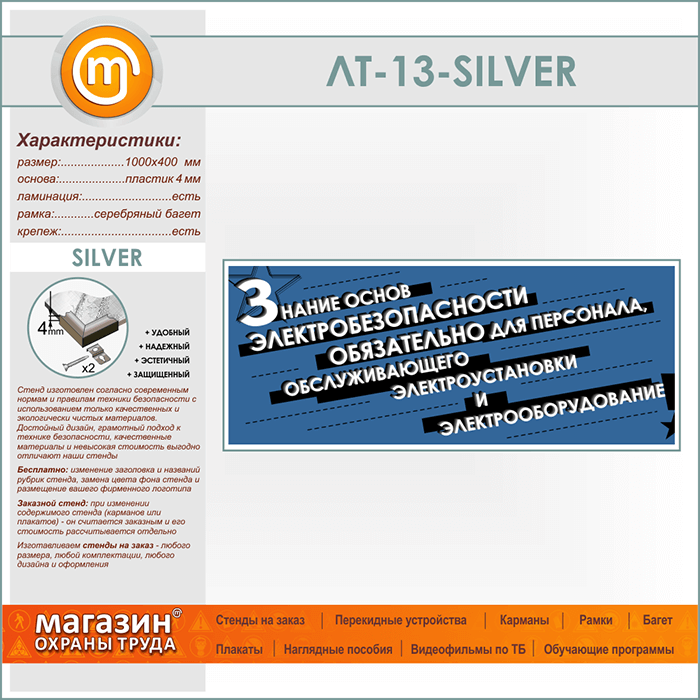 Лозунг «Знание основ электробезопасности обязательно...» (LT-13-SILVER) в Ачинске купить