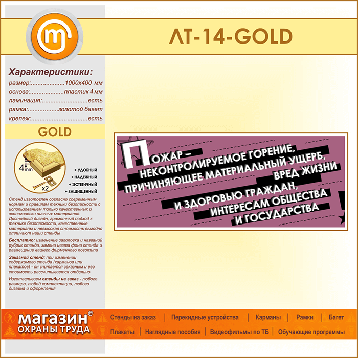 Лозунг «Пожар - неконтроллируемое горение...» (LT-14-GOLD) в Ачинске купить