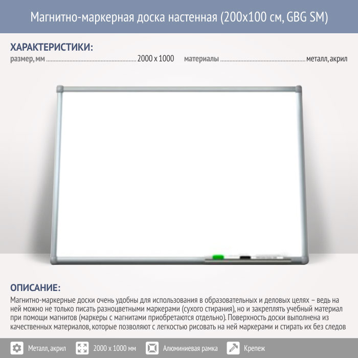 Магнитно-маркерная доска настенная (200x100 см, GBG SM) в Ачинске купить