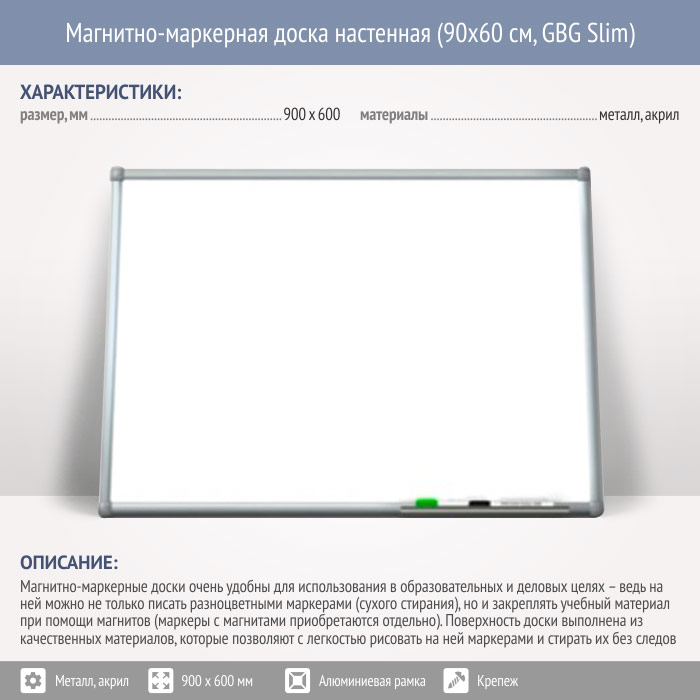 Магнитно-маркерная доска настенная (90x60 см, GBG Slim) в Ачинске купить