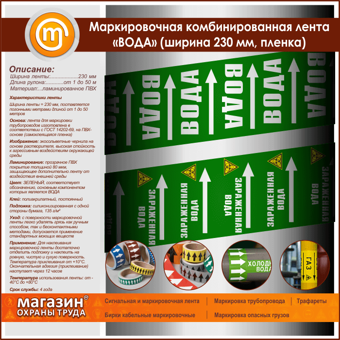 Маркировочная комбинированная лента «ВОДА» (ширина 230 мм, самоклеящаяся плёнка с ламинированием) в Ачинске купить