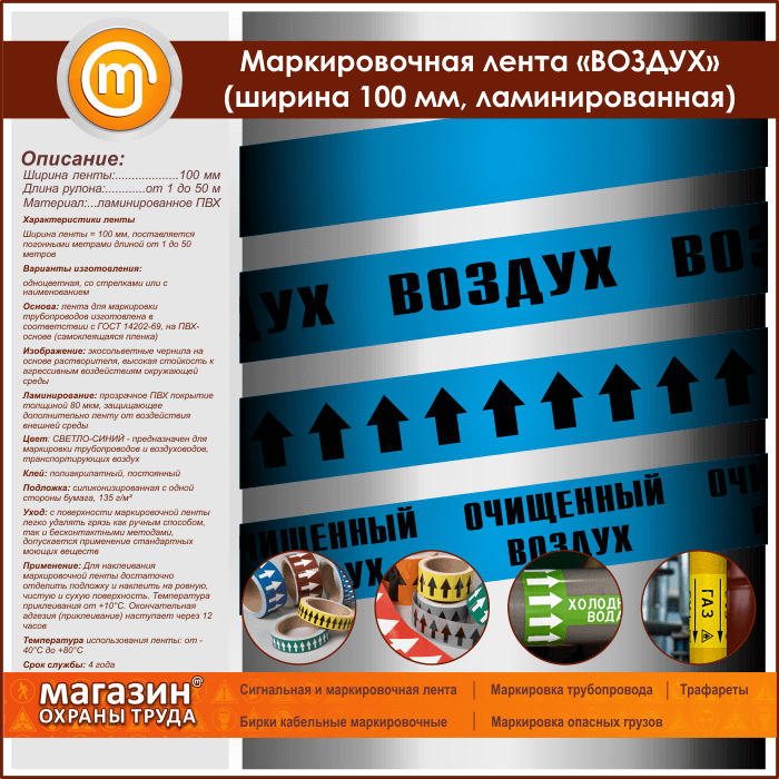 Маркировочная лента «ВОЗДУХ» (ширина 100 мм, самоклеящаяся плёнка) в Ачинске купить