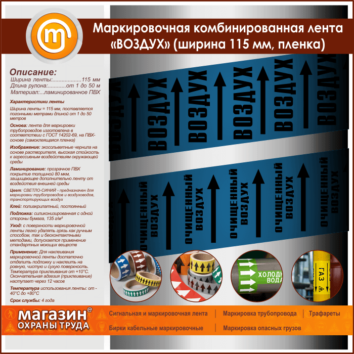 Маркировочная комбинированная лента «ВОЗДУХ» (ширина 115 мм, самоклеящаяся плёнка с ламинированием) в Ачинске купить