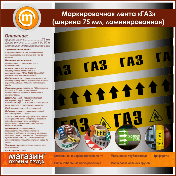 Маркировочная лента «ГАЗ» (ширина 75 мм, самоклеящаяся плёнка с ламинированием) в Ачинске купить