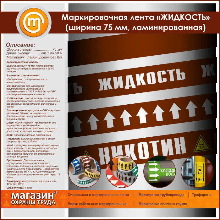 Маркировочная лента «ЖИДКОСТЬ» (ширина 75 мм, самоклеящаяся плёнка с ламинированием) в Ачинске купить