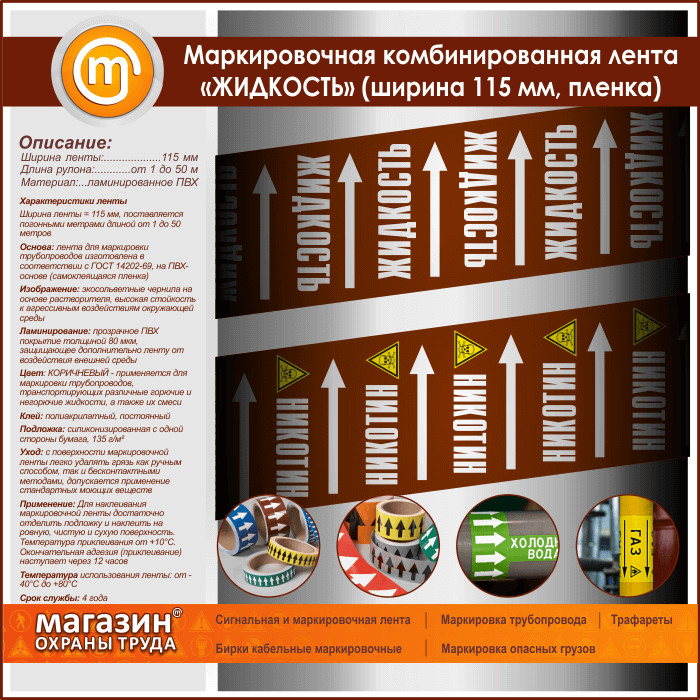 Маркировочная комбинированная лента «ЖИДКОСТЬ» (ширина 115 мм, самоклеящаяся плёнка с ламинированием) в Ачинске купить