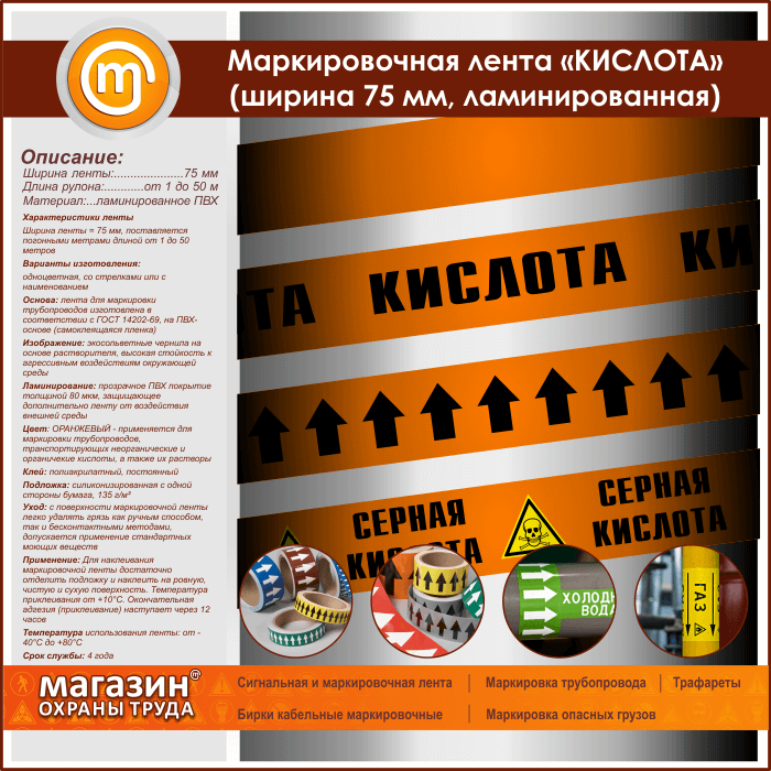 Маркировочная лента «КИСЛОТА» (ширина 75 мм, самоклеящаяся плёнка) в Ачинске купить