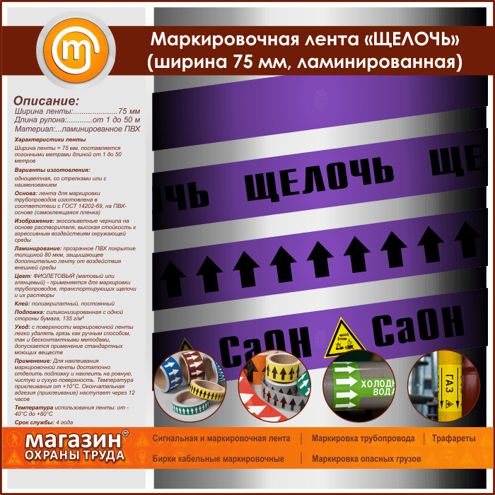 Маркировочная лента «ЩЕЛОЧЬ» (ширина 75 мм, самоклеящаяся плёнка с ламинированием) в Ачинске купить