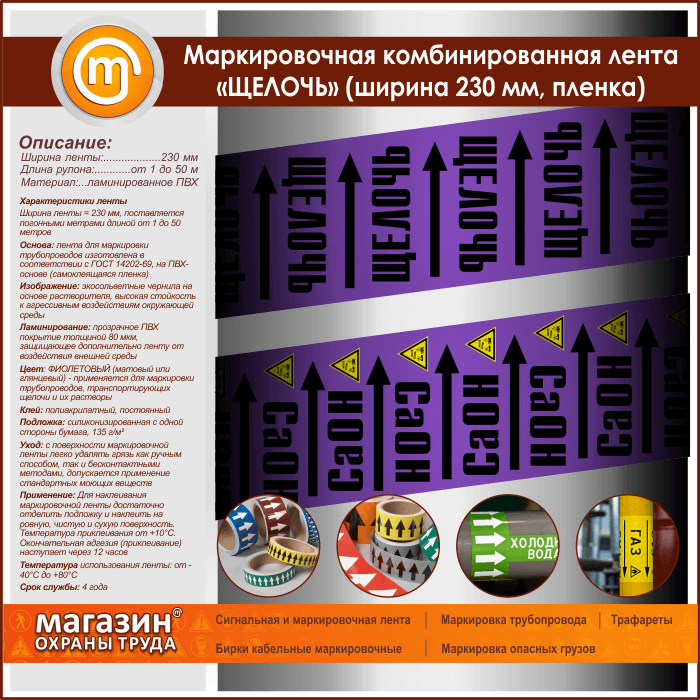 Маркировочная комбинированная лента «ЩЕЛОЧЬ» (ширина 230 мм, самоклеящаяся плёнка с ламинированием) в Ачинске купить
