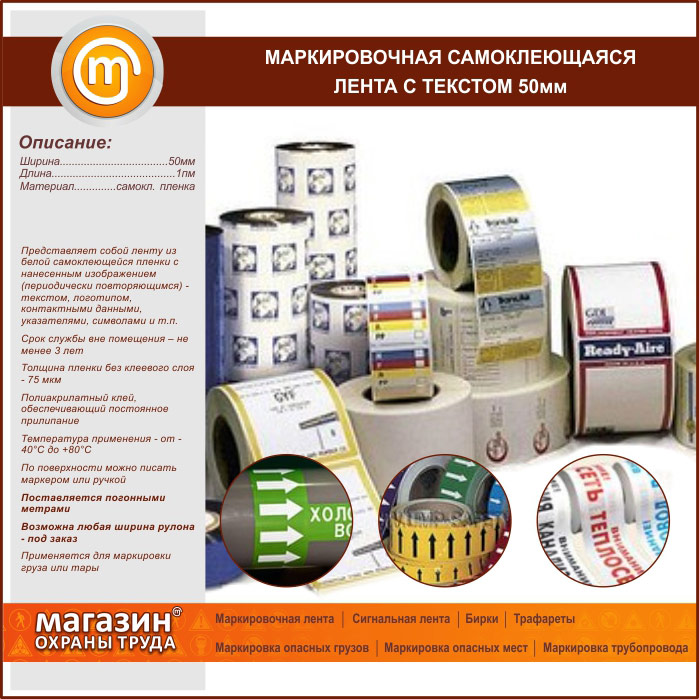 Маркировочная самоклеящаяся лента с текстом 50 мм в Ачинске купить