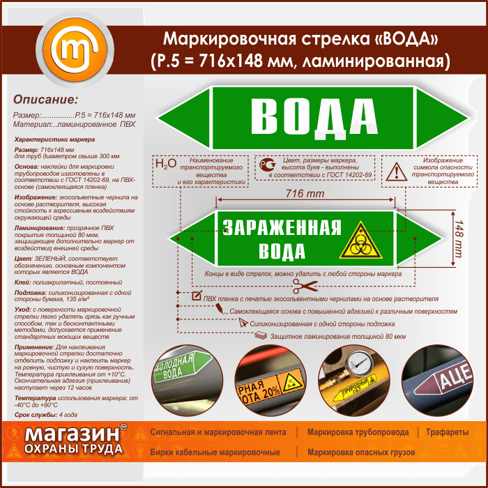 Маркировочная стрелка «ВОДА» (P.5 = 716х148 мм, самоклеящаяся плёнка с ламинированием) в Ачинске купить
