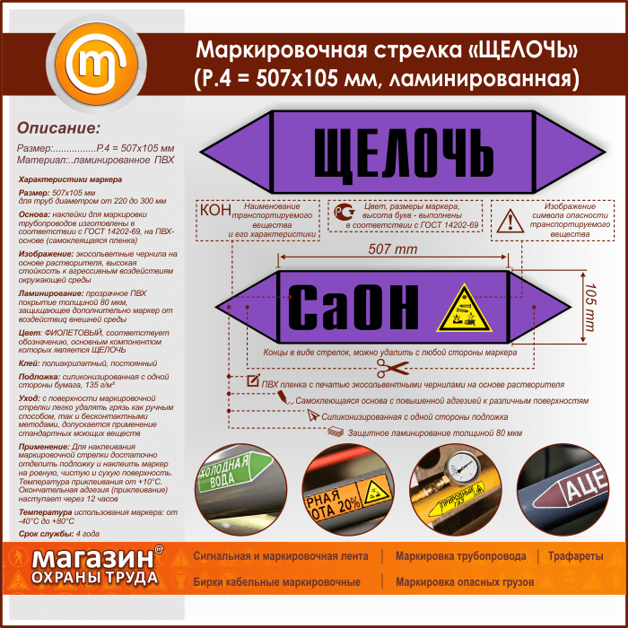 Маркировочная стрелка «ЩЕЛОЧЬ» (P.4 = 507х105 мм, самоклеящаяся плёнка с ламинированием) в Ачинске купить