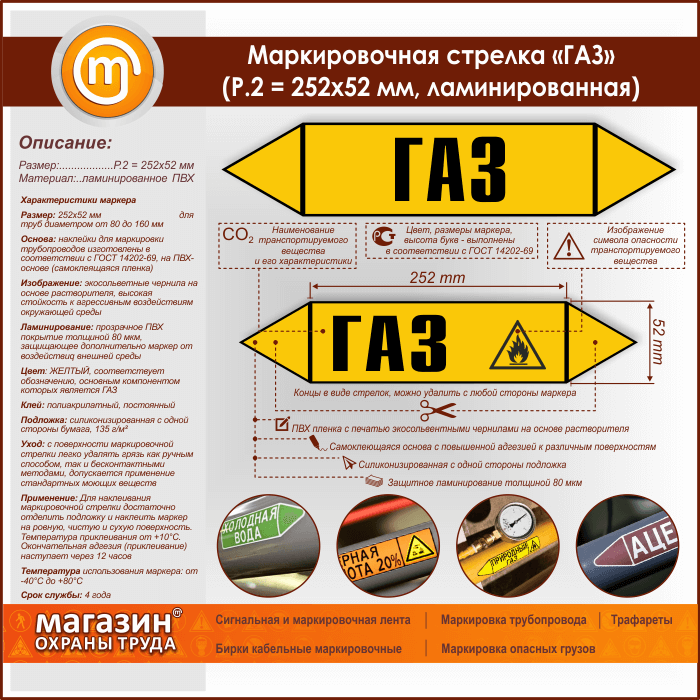 Маркировочная стрелка «ГАЗ» (P.2 = 252х52 мм, самоклеящаяся плёнка с ламинированием) в Ачинске купить