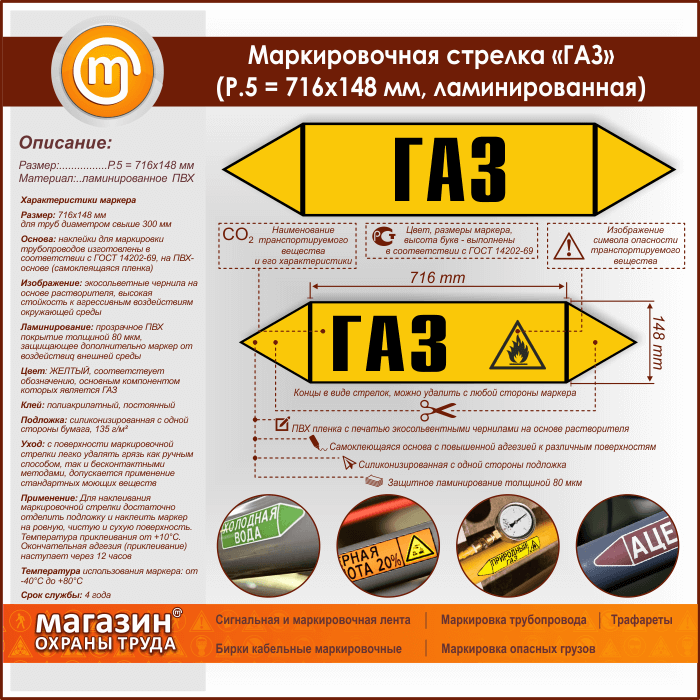 Маркировочная стрелка «ГАЗ» (P.5 = 716х148 мм, самоклеящаяся плёнка с ламинированием) в Ачинске купить