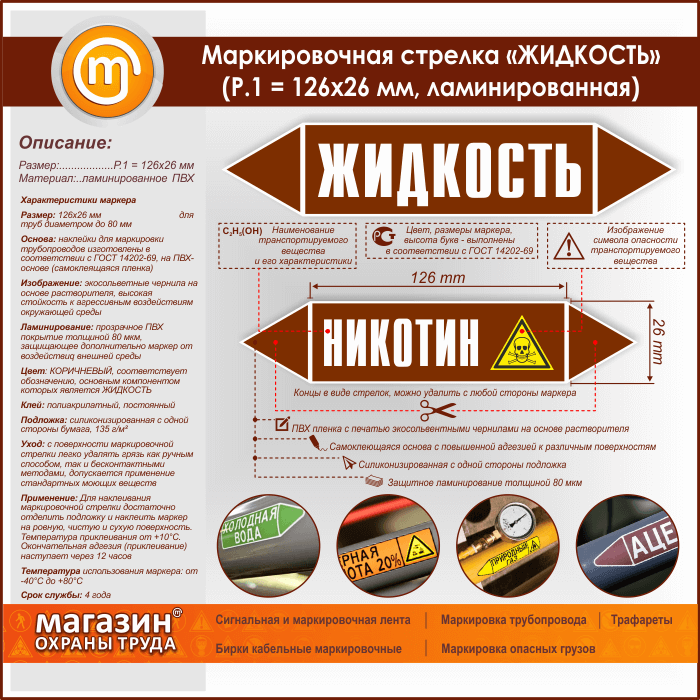 Маркировочная стрелка «ЖИДКОСТЬ» (Р.1 = 126х26 мм, самоклеящаяся плёнка с ламинированием) в Ачинске купить