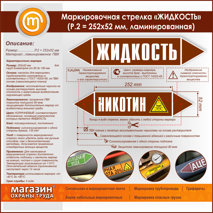 Маркировочная стрелка «ЖИДКОСТЬ» (P.2 = 252х52 мм, самоклеящаяся плёнка с ламинированием) в Ачинске купить