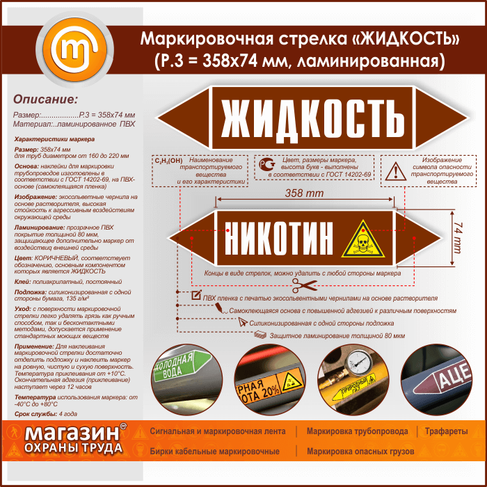 Маркировочная стрелка «ЖИДКОСТЬ» (P.3 = 358х74 мм, самоклеящаяся плёнка с ламинированием) в Ачинске купить