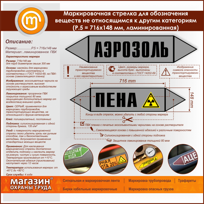 Маркировочная стрелка «ПРОЧИЕ ВЕЩЕСТВА» (P.5 = 716х148 мм, самоклеящаяся плёнка с ламинированием) в Ачинске купить