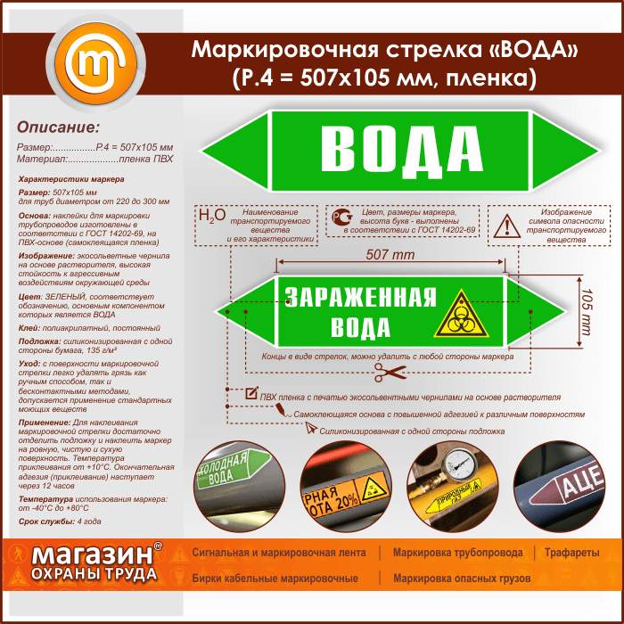 Маркировочная стрелка «ВОДА» (P.4 = 507х105 мм, самоклеящаяся плёнка) в Ачинске купить