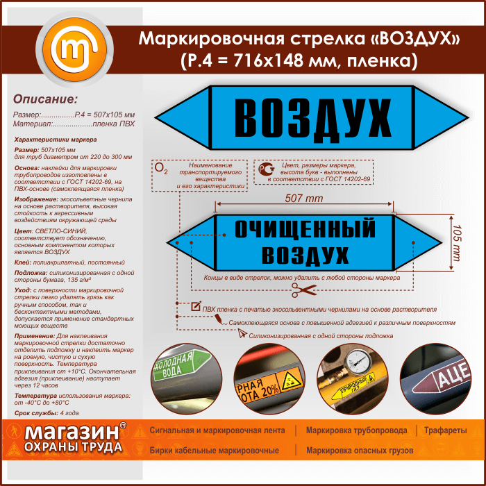 Маркировочная стрелка «ВОЗДУХ» (P.4 = 507х105 мм, самоклеящаяся плёнка) в Ачинске купить